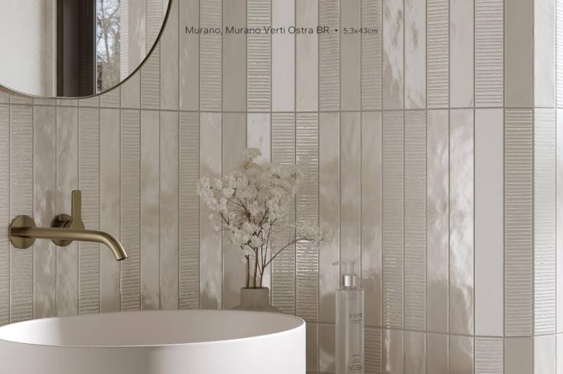 Murano celebra a arte do vidro veneziano em tonalidades vibrantes.Seu acabamento com efeito brilhante amplifica a intensidade das cores e entrega sofisticação, enquanto as versões com texturas adicionam profundidade artística aos ambientes, criando um contraste elegante, principalmente com a suavidade da cor Ostra.